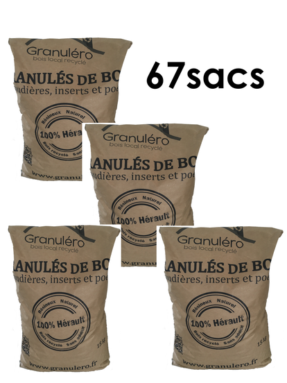 La palette contient 67 sacs de 15 kg de granulés de bois :